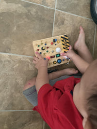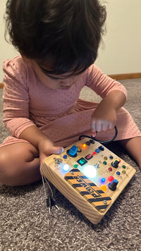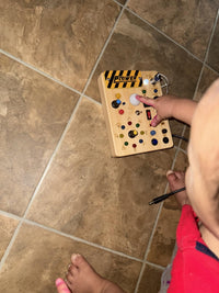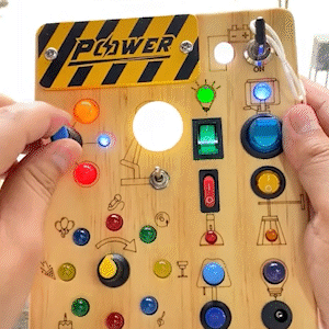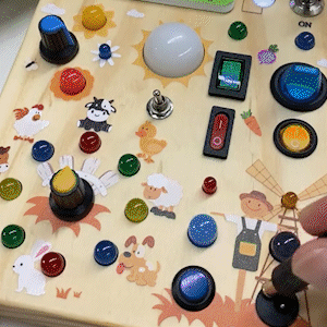 The Busy Board is crafted from eco-friendly, durable wood with smooth edges. All switches and buttons are securely attached to ensure long-lasting play and child safety.