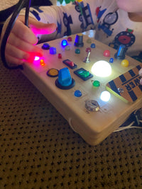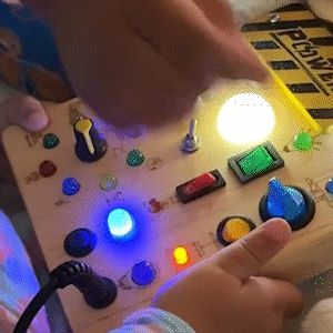 Kids explore 10 different switches that activate 19 glowing LED lights. - Encourage Exploration