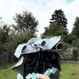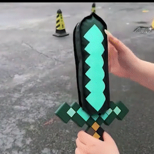 - Remove from Case – Take the umbrella out of its pixel sword carrying case.