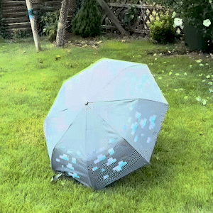 Pixel sword handle adds playful style, making rainy days feel like an adventure.