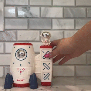 Whether at the kitchen table, in the living room, or outside in the backyard, this rocket is the perfect travel companion for space missions anywhere. Its compact size and simple operation make it a parent-approved favorite.