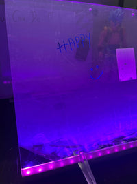 The SparkBoard™ uses built-in LED lights along the edges of the board that illuminate your drawings when switched on. This creates the glowing effect with the fluorescent pens.