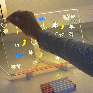 The SparkBoard™ LED Acrylic Drawing Pad is a reusable, screen-free drawing pad that lights up your child’s creativity with 7 vibrant colors and fluorescent pens. Easy to erase and reuse, it encourages endless artistic fun while reducing paper waste. Doubling as a cozy night light, it makes the perfect addition to any bedroom décor. Safe, engaging, and educational, SparkBoard turns learning and play into a glowing adventure every day.
