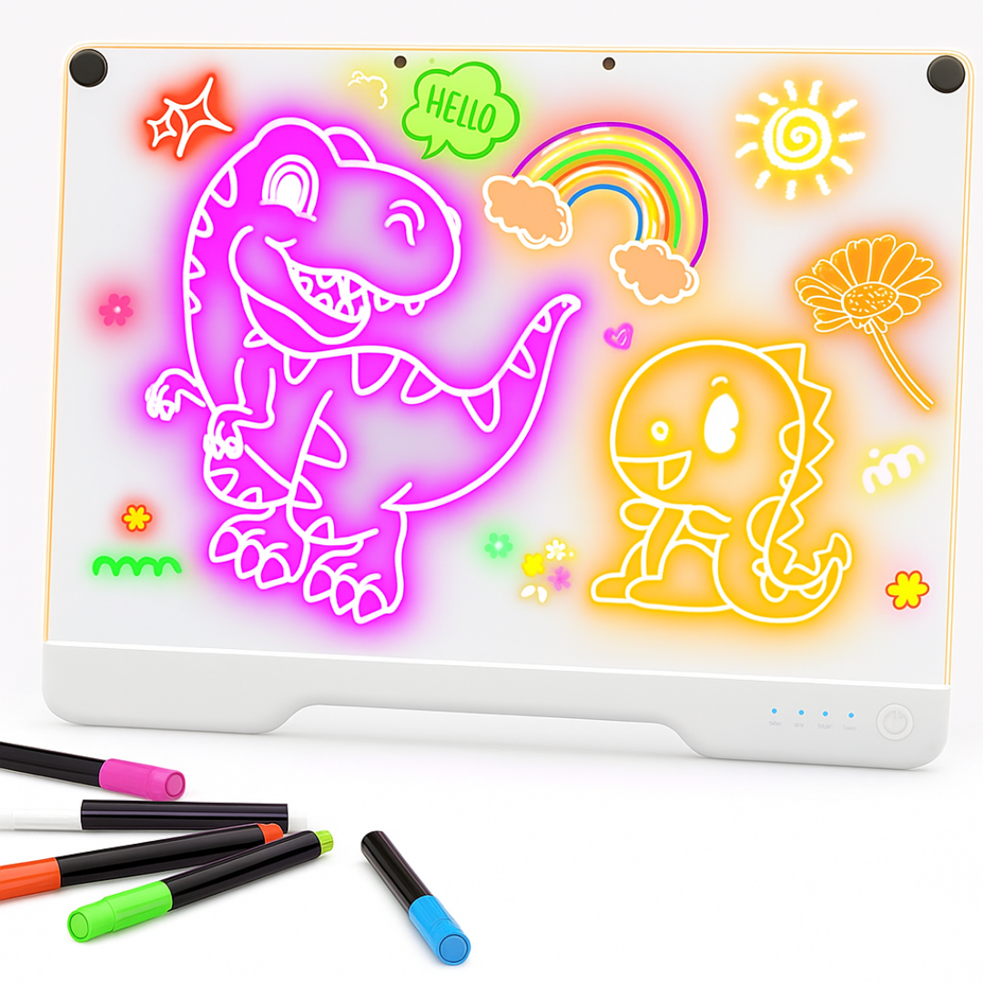 The SparkBoard™ LED Acrylic Drawing Pad is a reusable, screen-free drawing pad that lights up your child’s creativity with 7 vibrant colors and fluorescent pens. Easy to erase and reuse, it encourages endless artistic fun while reducing paper waste. Doubling as a cozy night light, it makes the perfect addition to any bedroom décor. Safe, engaging, and educational, SparkBoard turns learning and play into a glowing adventure every day.