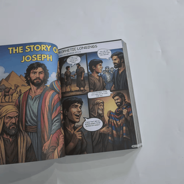 This is designed as a bridge to help children engage with scripture and understand the overall Bible story. Think of it as a gateway that builds biblical literacy and excitement about God's Word. Many families use it alongside a traditional Bible, with kids referencing the comic version to understand context.
